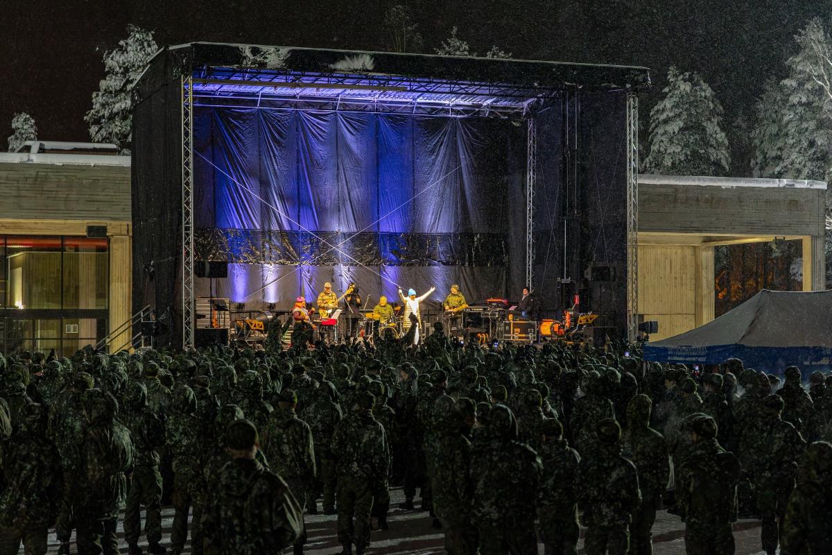 Karjalan prikaatin kotiuttamisjuhlassa esiintyi Katri-Helena 13.12.2023.