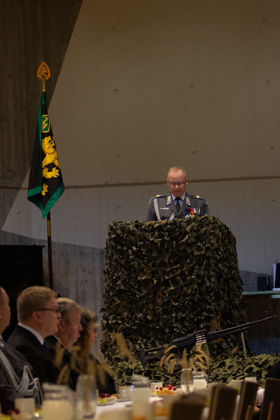 Panssarikoulun johtaja, everstiluutnantti Matti Anttila painotti reservinupseereiden roolia keihäänkärkijoukoissa ja kehotti hyvään johtajuuteen.