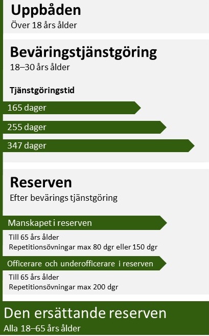 Tjänstgöringstid: 165 dager, 255 dager eller 347 dager